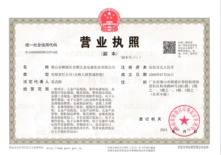 Company Name : Foshan Shunde Beishun Hardware & Electrical Appliances Industrial Co., Ltd.